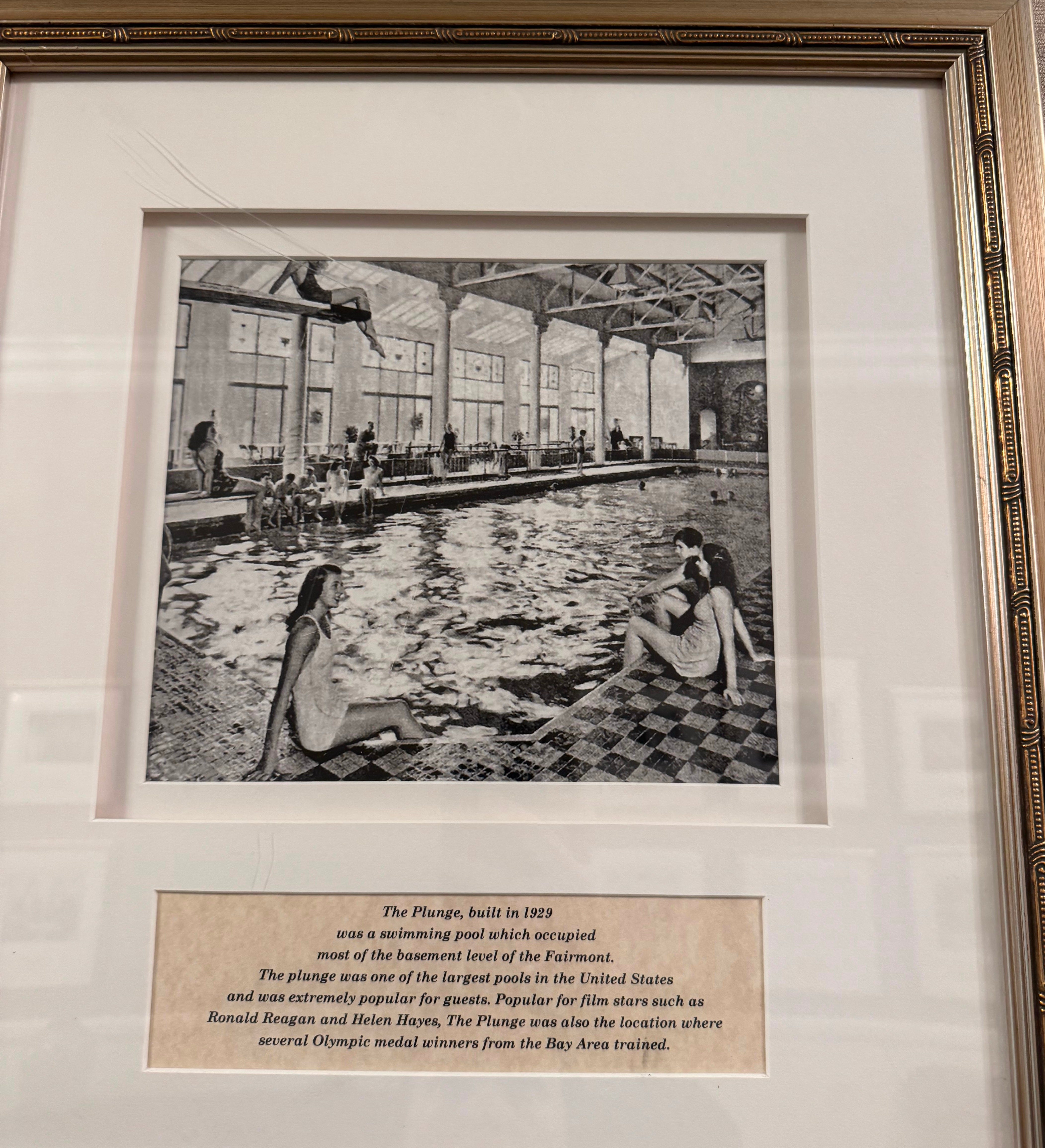 The pool (which is still the centerpiece of the room today) was once a hotspot in San Francisco called “The Plunge.” Built in 1929, the pool was popular among guests, competitive swimmers, and celebrities. Apparently Ronald Reagan and Helen Hayes both swam there.