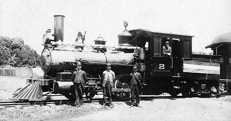 The North Pacific Coast Railroad hauled passengers, goods, and supplies along this route for about 50 years until it was dismantled in 1929.
